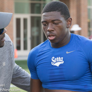 The big story was current signee WR Justyn Ross was on site, 2019 Commit Braylon Spector was showing why he is so highly valued at the WR position as we saw him really show a impressive skill set from initial burst to ball skills. Very surprising. We also had the chance to see 6'4 Ze'Vian Capers work out with the WR's and see Coach Jeff Scott up close put Capers through the drills. Big body and huge wing span the big wideout looked good.