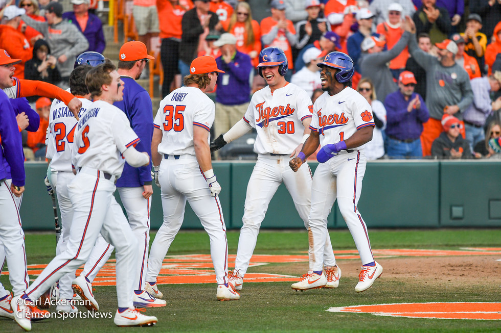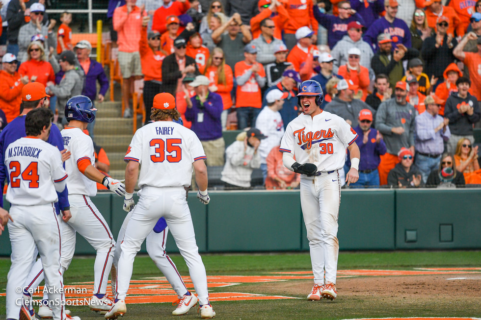 CLEMSON, S.C. - James Parker's two-out, two-run double in the seventh inning broke a 2-2 tie and lifted Clemson to a 5-2 victory over South Carolina at Doug Kingsmore Stadium on Sunday afternoon. The Tigers, who won the series 2-1, improved to 9-2, while the Gamecocks fell to 7-4.